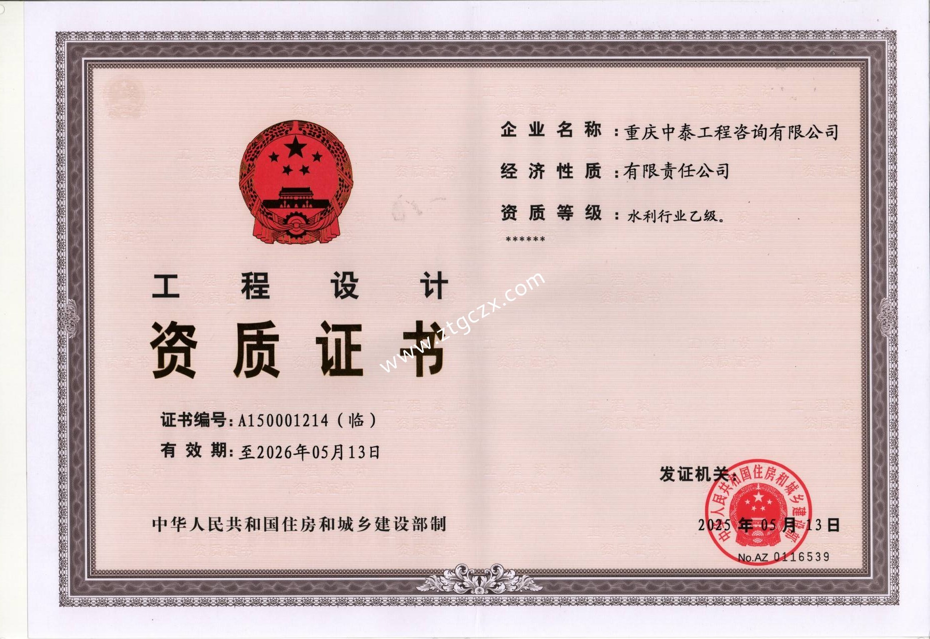 重慶中泰工程咨詢有限公司設計資質(zhì)